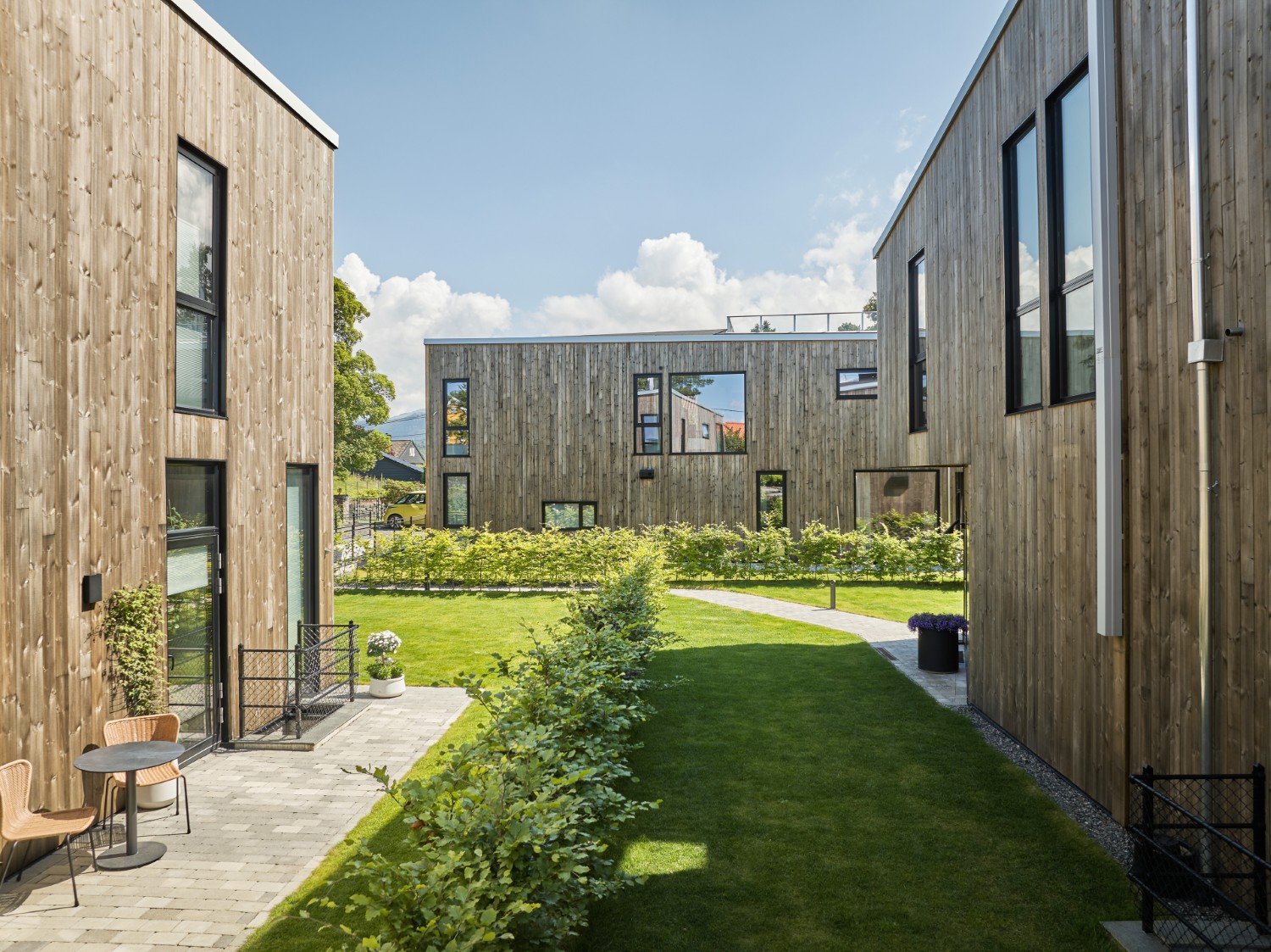 3 boliger i tun som et fortetningsprosjekt på Hop i Bergen.
